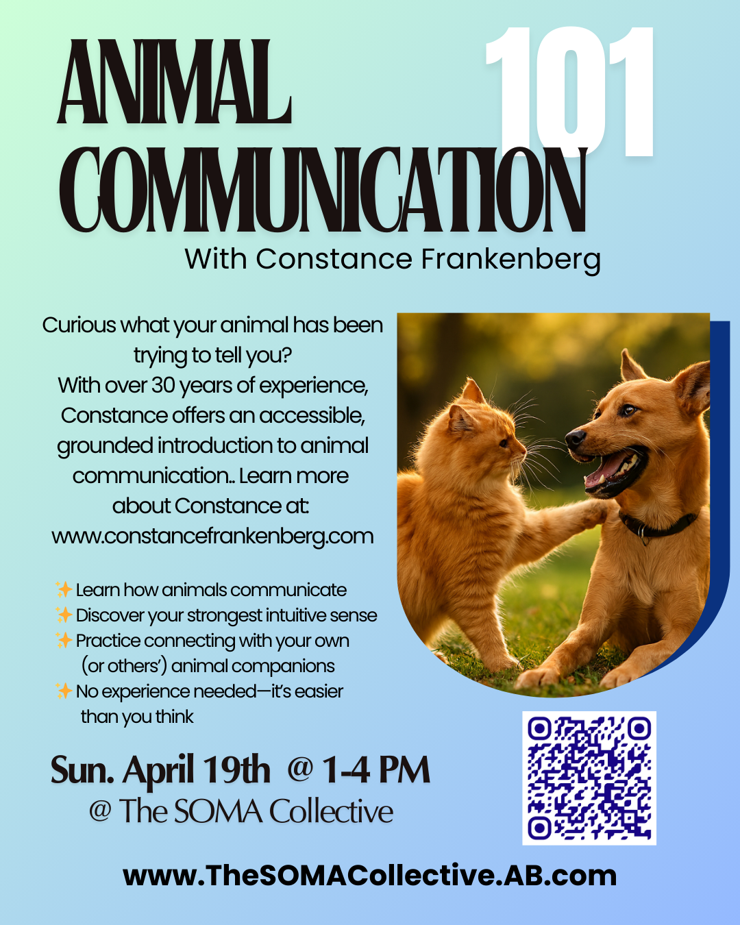 With over 30 years of professional experience, Constance Frankenberg offers a grounded, supportive introduction to animal communication. In this experiential workshop, you’ll learn how intuitive communication works, discover your strongest intuitive sense, and practice connecting with animals in a clear, confident way.